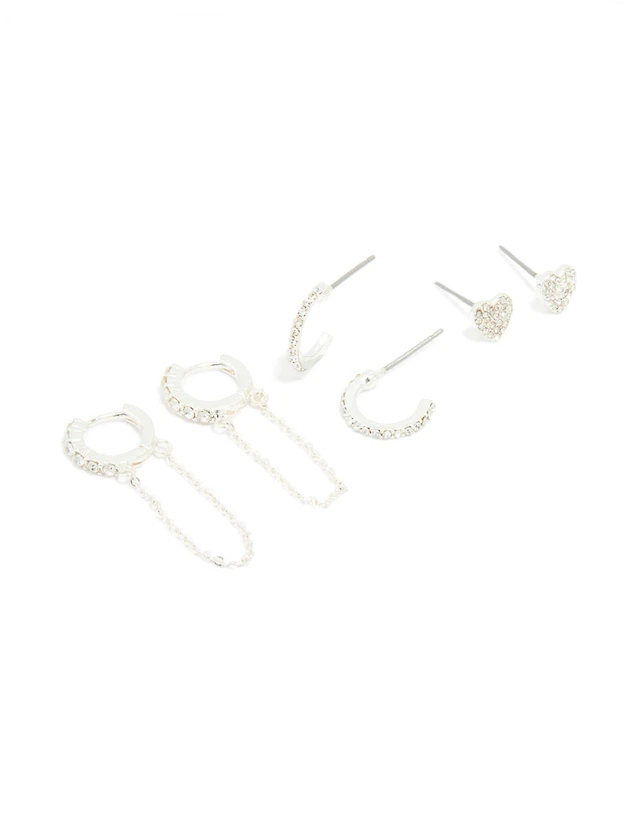 Gold Plated Chunky Hoop & Chain Earrings 4-Pack