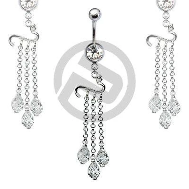 Fancy Clear CZ 3 Drop Chain Dangle Belly Button Navel Ring