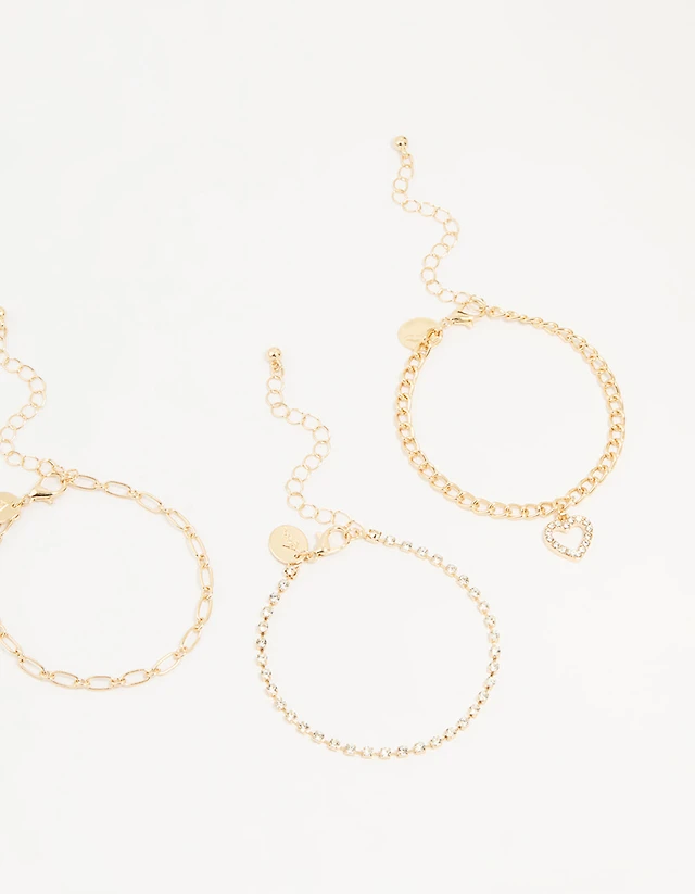 10K Gold Stampato "X" and Heart Bracelet