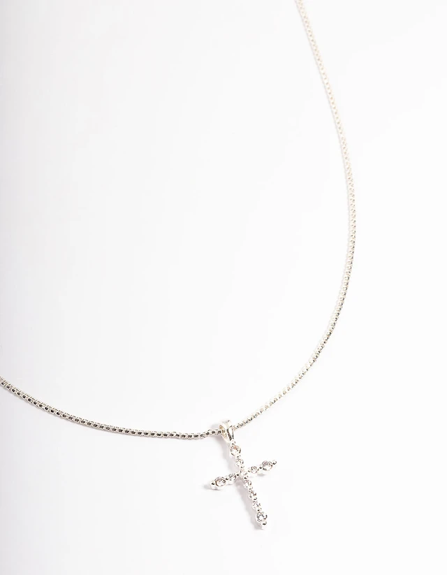 5.0mm Cushion-Cut Lab-Created Ruby and 0.12 CT. T.W. Diamond Cross Pendant in Sterling Silver