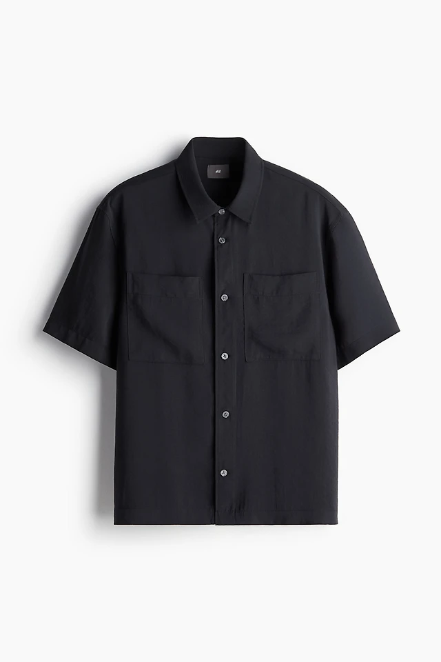 Short-Sleeve Camp-Collar Shirt with Embroidered Details