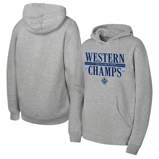 Youth Heather Gray Vancouver Whitecaps FC 2025 MLS Western Conference Champions Locker Room Hoodie