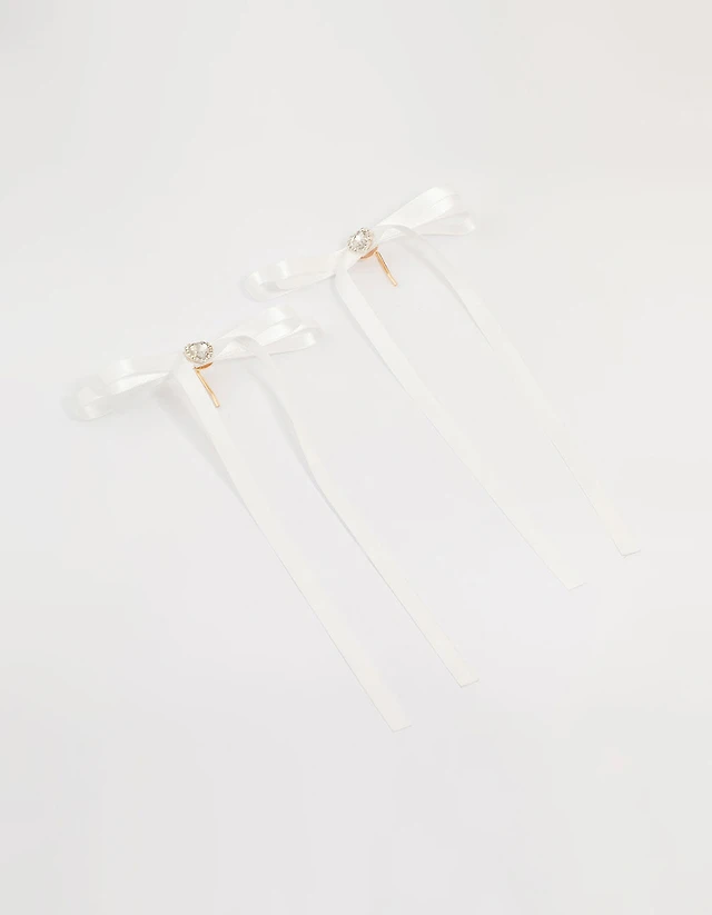 White Fabric Heart Ponytail Hair Hooks 2-Pack