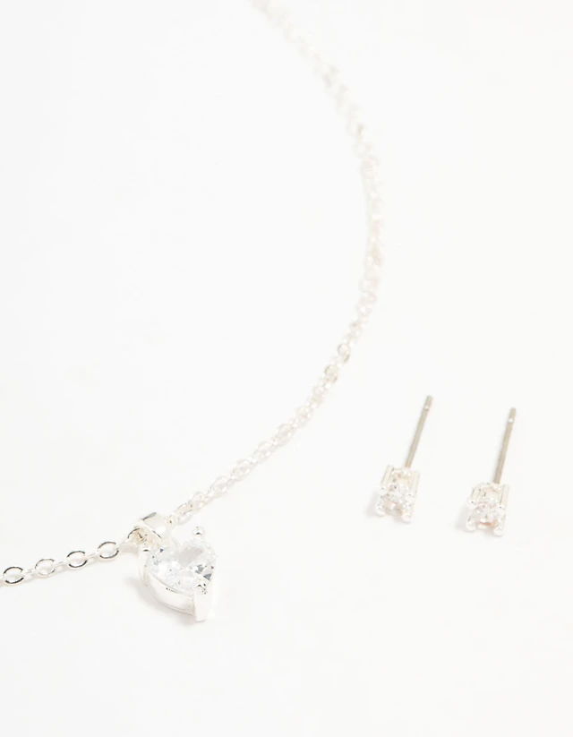 Gold Plated Sterling Silver Heart Cubic Zirconia Stud Earrings
