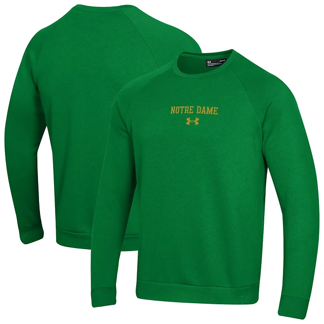 Men's Under Armour Kelly Green Notre Dame Fighting Irish Sideline Rival Fleece Crewneck Sweatshirt