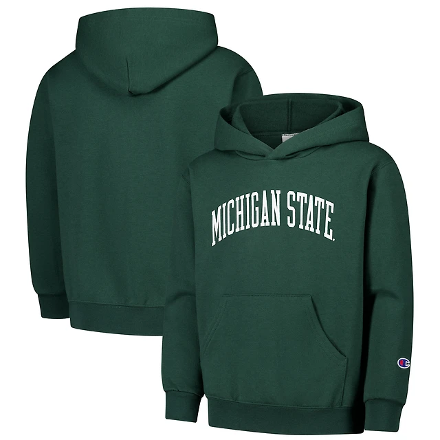 Men's Champion Heather Gray Michigan State Spartans Arch Over Logo Pullover Hoodie