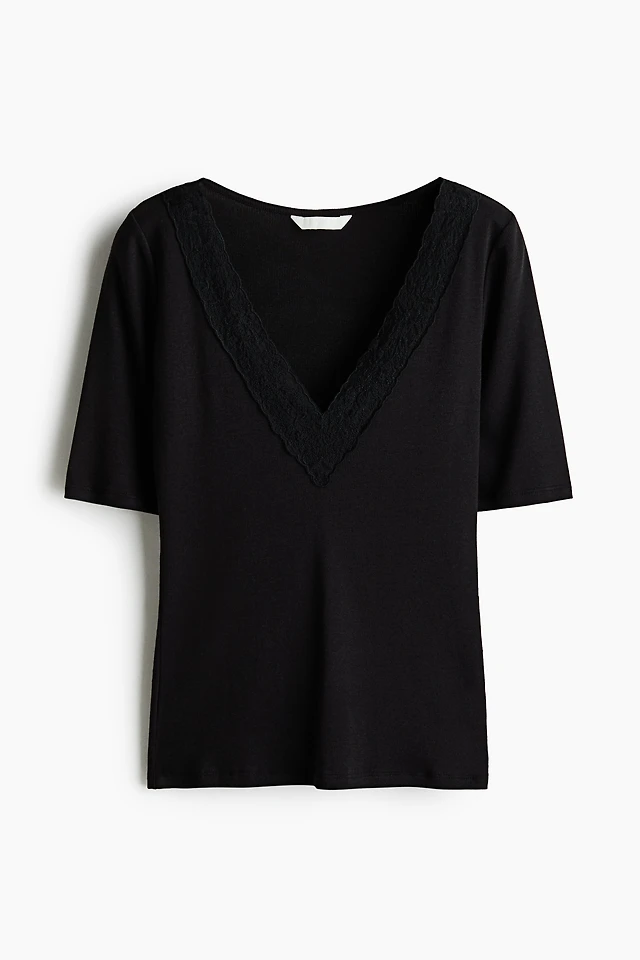 Picot-Trimmed Ribbed T-Shirt