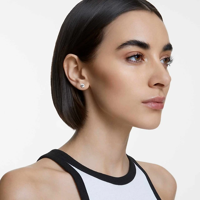 Stilla stud earrings, Round cut, White, Rhodium plated
