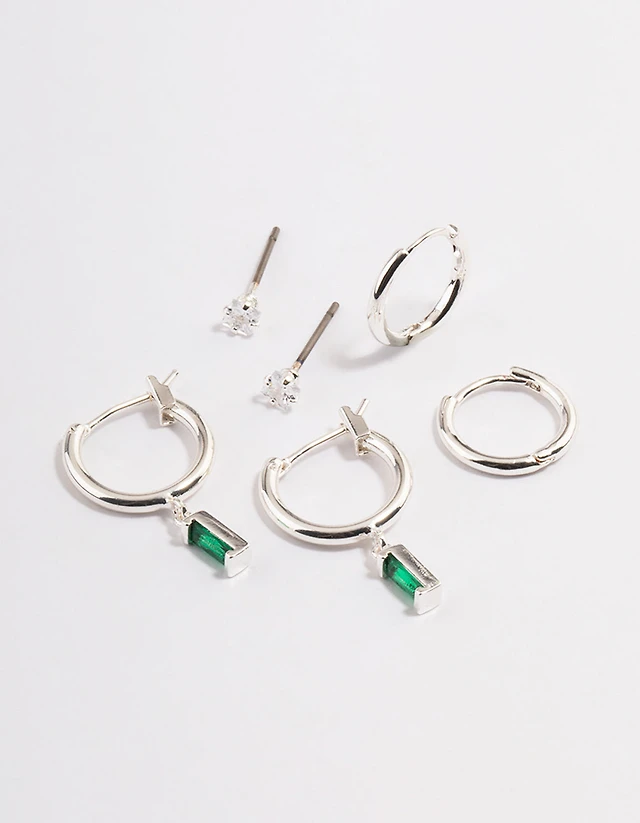 Birthstone stud earrings, Square cut, May, Green, Rhodium plated by SWAROVSKI