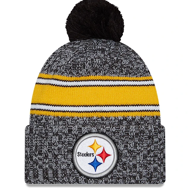 Men's New Era Stone Pittsburgh Steelers Sideline Historic Cuffed Knit Hat with Pom