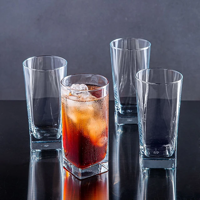 Home Essentials Red Series Square Hi-Ball Glass - Set of 4