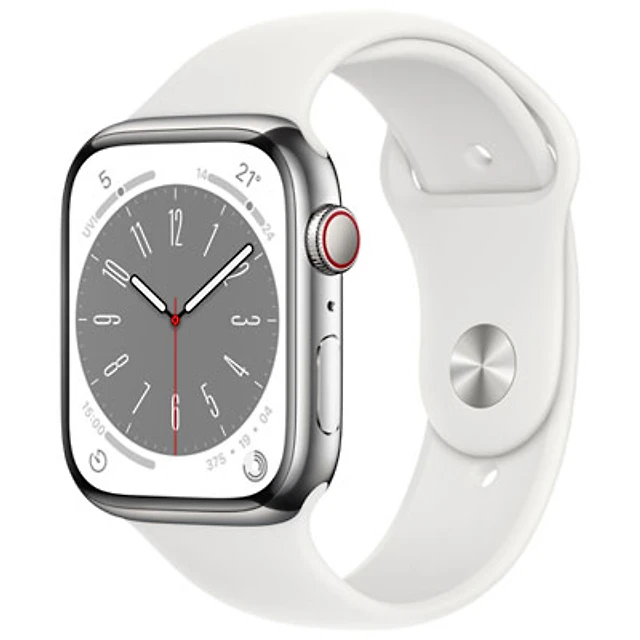 Koodo Apple Watch Series 8 (GPS + Cellular) 41mm Silver Stainless Steel Case with White Sport Band - Small/Medium - Monthly Tab Payment