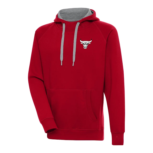 Men's Antigua Red Chicago Bulls Metallic Logo Victory Raglan Pullover Hoodie