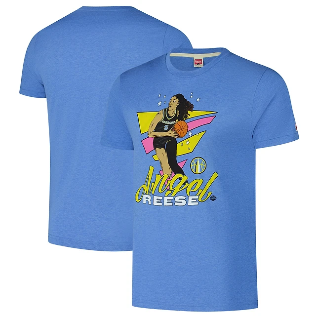 Unisex Homage Angel Reese Sky Blue Chicago Caricature Tri-Blend T-Shirt