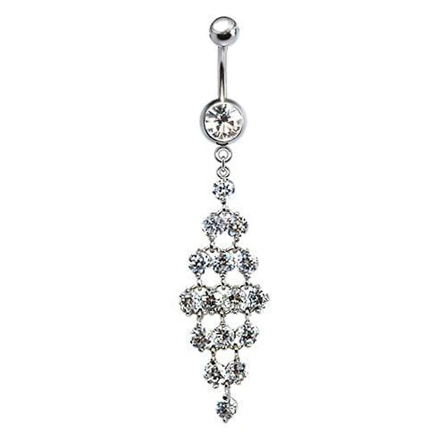 316L Surgical Steel Gold PVD Diamond Chandelier Dangle Belly Ring