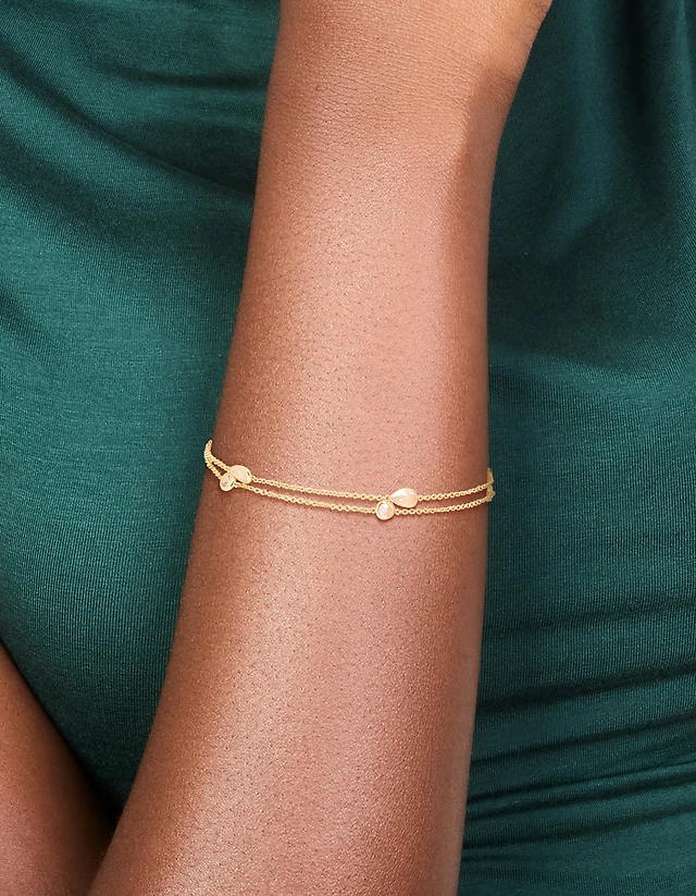 Gold Plated Green Semi Precious Stone & Mini Pearl Bracelet