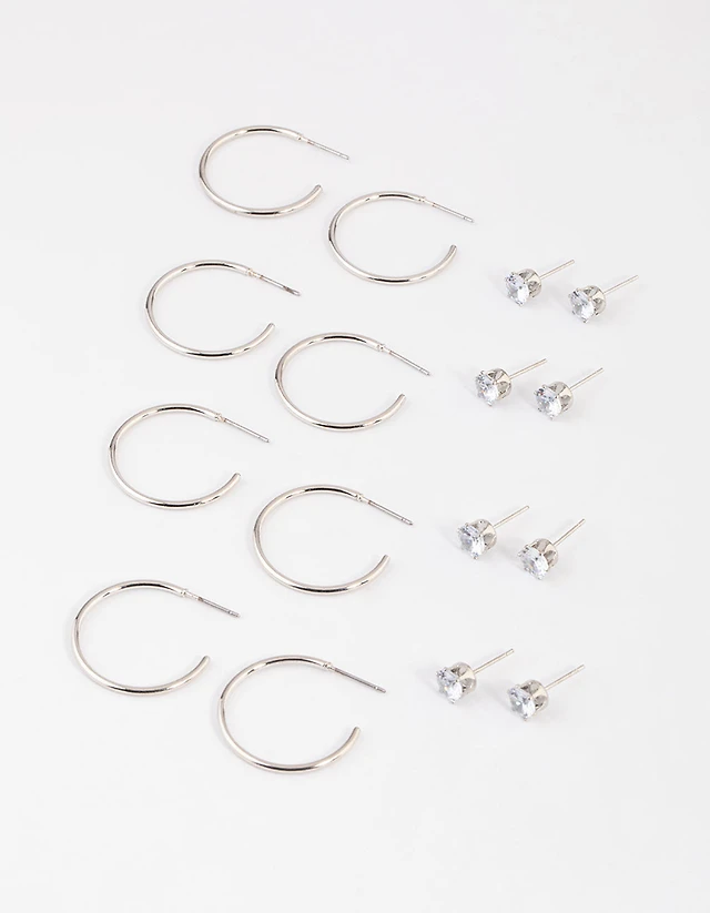 Diamond Accent Heart Lock Single Stud Earrings in Sterling Silver