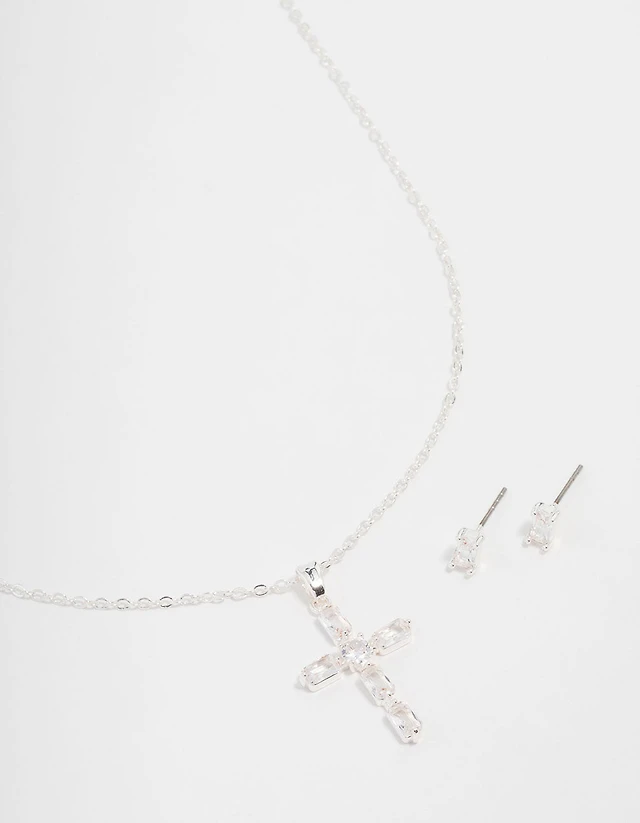 Gold Plated Plain Cross Snake Layered Necklace