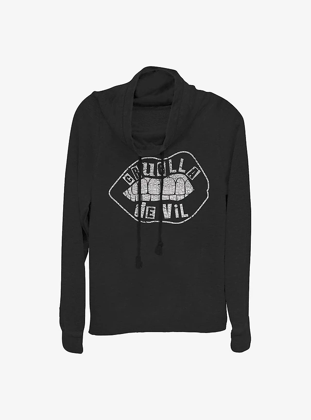 Disney Cruella Lip Cut Out Name Outline Cowlneck Long-Sleeve Girls Top