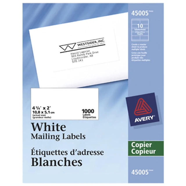 Avery 4-1/4" x 2" Copier Address Label (AVE45005) - 1000 Pack - White