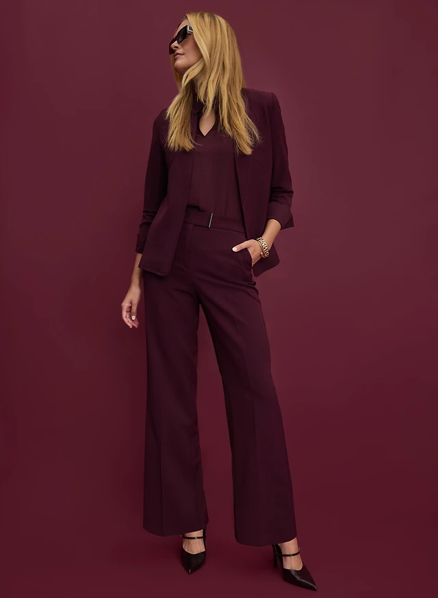 Faux-Suede Dome Button Jacket & Olivia Bar Trim Wide-Leg Pants