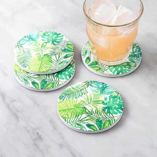 KSP Ceramica 'Fern' Printed Ceramic Coaster - Set/4 (Green/White)
