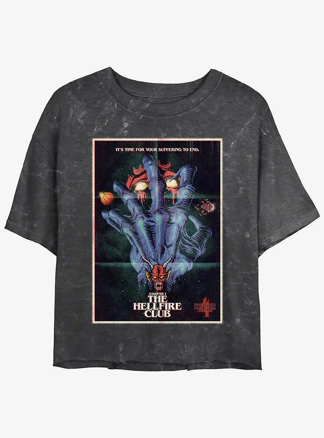 Stranger Things x Butcher Billy The Hellfire Club Mineral Wash Crop Girls T-Shirt