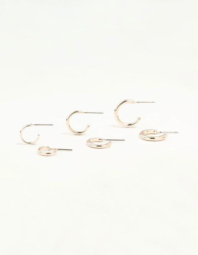 Rose Gold Twisted & Clean Hoop Earrings 3-Pack