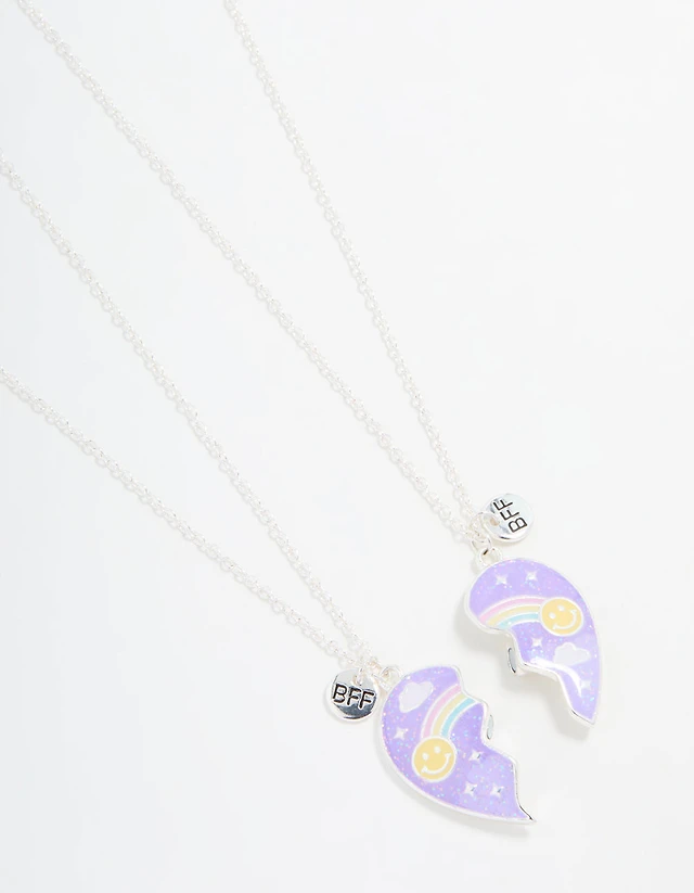 Kids Silver Rainbow Heart BFF Necklace Set