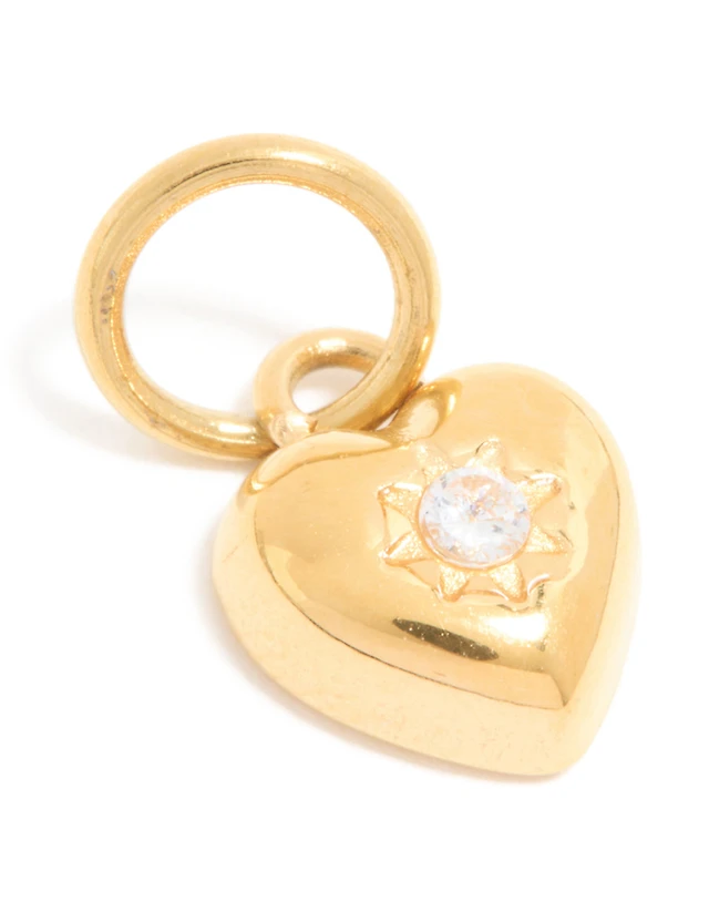 Waterproof Gold Plated Stainless Steel Cubic Zirconia Open Heart Disc Charm