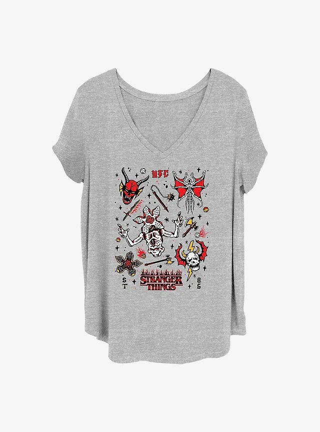 Stranger Things Hellfire Club Doodles Girls T-Shirt Plus