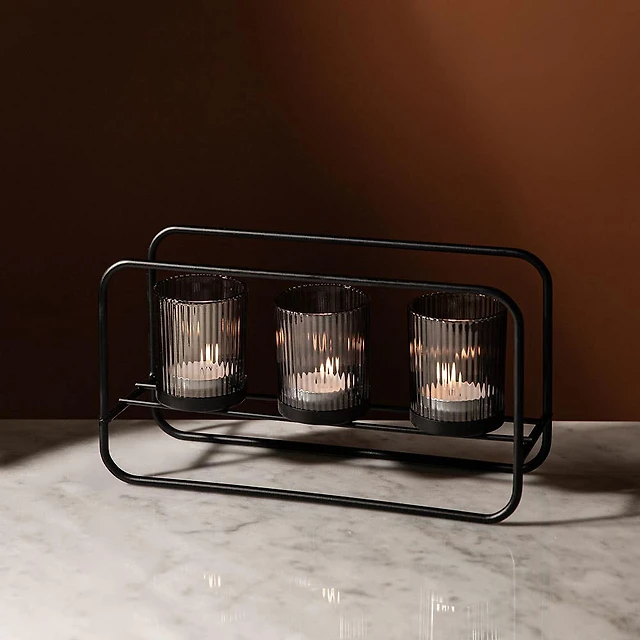 KSP Horizon '3-Lite' Iron Candle Holder (Black/Smoke)