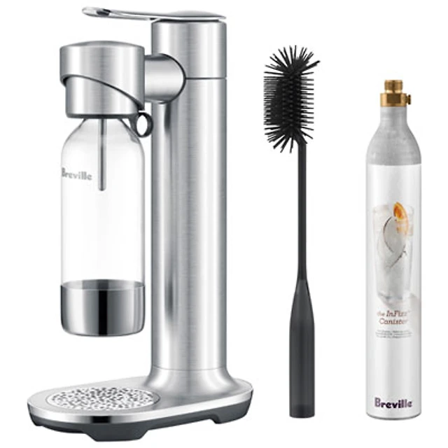 Breville InFizz Aqua 1L Soda Machine with Co2 Canister & Bottle Brush - Stainless Steel