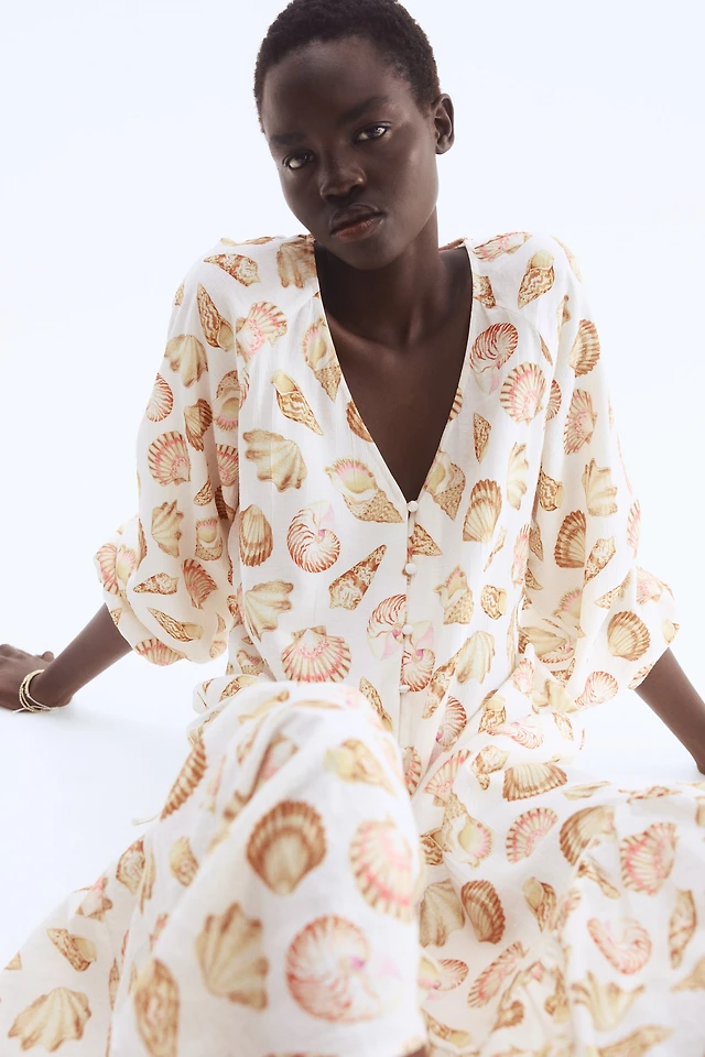 *Thirza Off-White Gold Buttons Trench Feathers Hem Dress