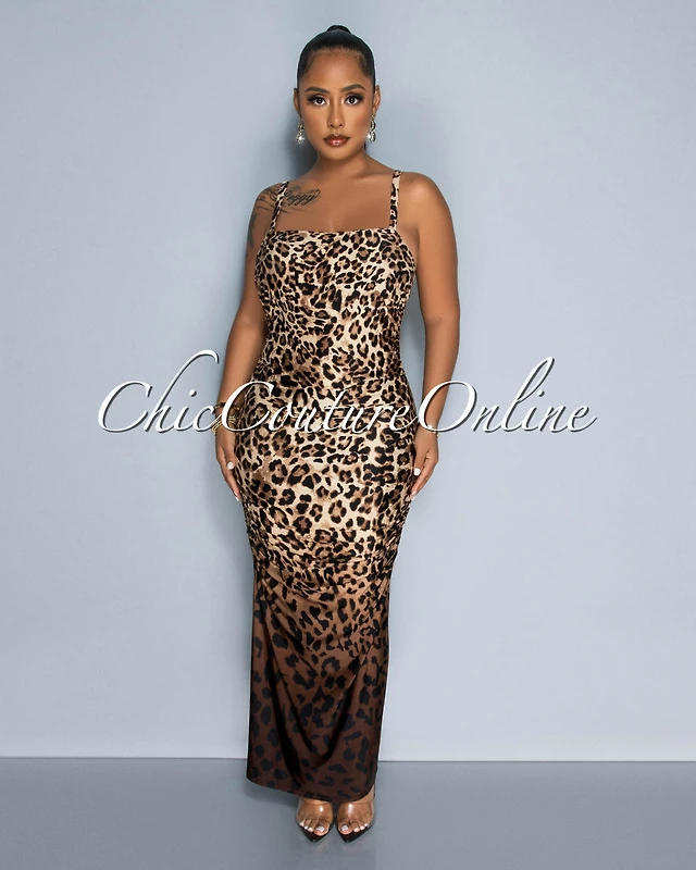 *Salute Leopard Print Ruffle Slit Maxi Dress