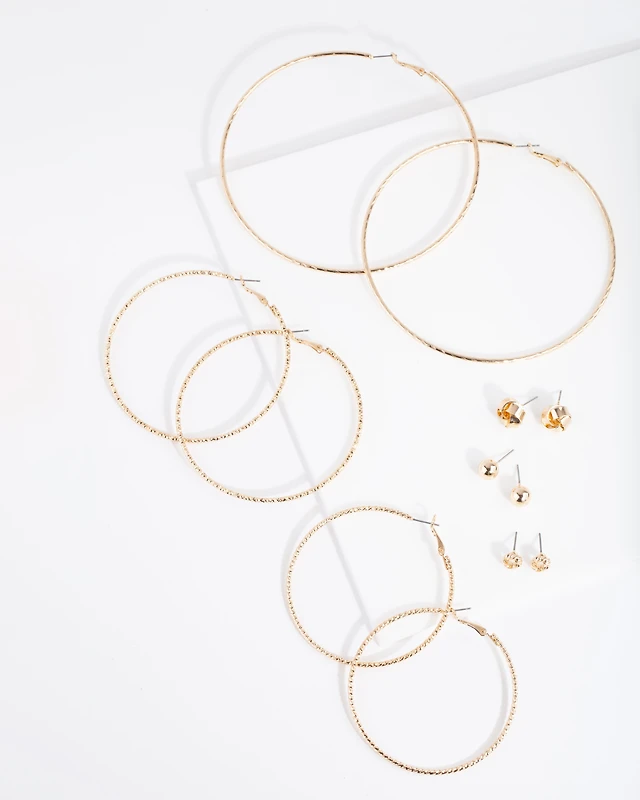 Sterling Silver Blue Stud, Flower & Hoop Pack