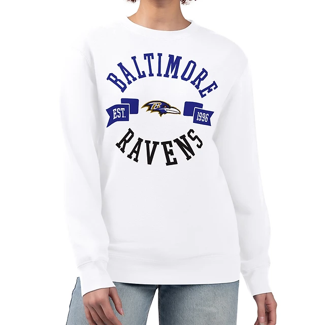 Women's G-III 4Her by Carl Banks Heather Gray Baltimore Ravens Large Team Graphic Fleece Pullover Sweatshirt