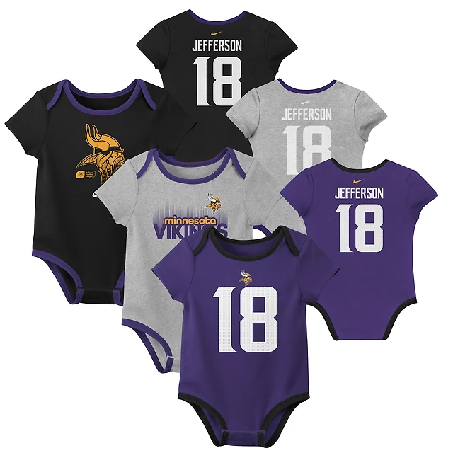 Newborn & Infant Nike Justin Jefferson Minnesota Vikings Name Number 3-Pack Bodysuit Set