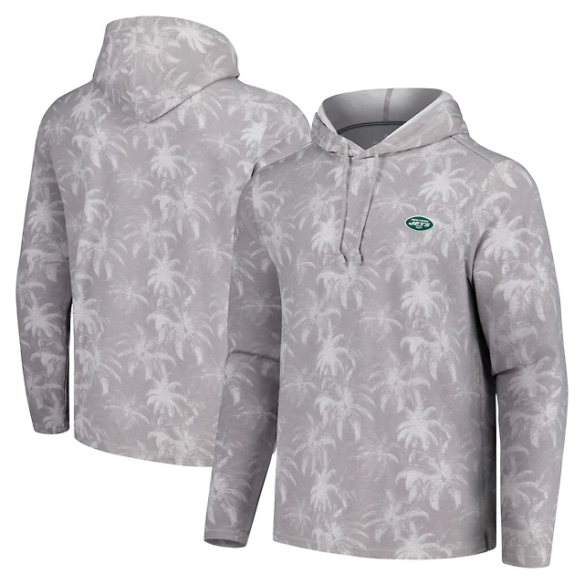 Men's Tommy Bahama Gray New York Jets Palm Frenzy Hoodie Long Sleeve T-Shirt