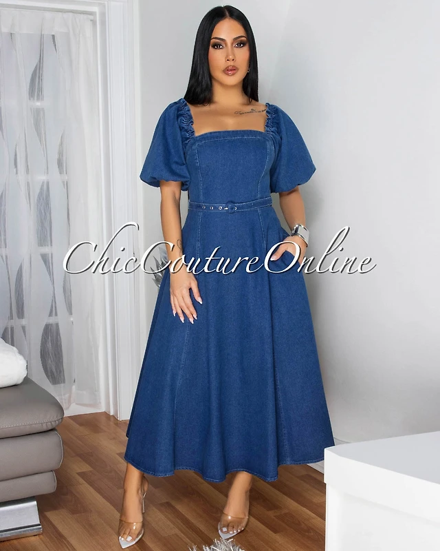 Teisha Medium Denim Off-The-Shoulder Midi Dress
