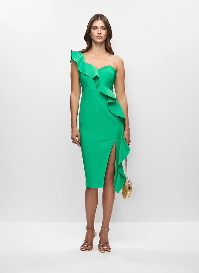 Aidan Mattox - One-Shoulder Ruffle Dress