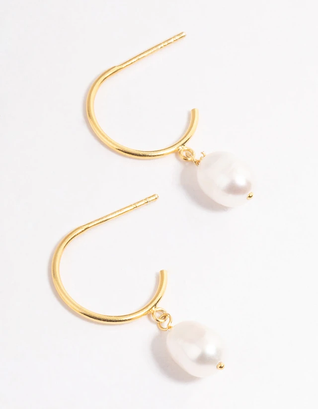 Gold Plated Sterling Silver Pearl Drop Hoop Earrings