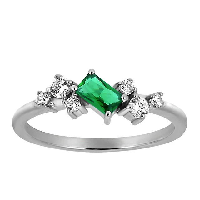 Earrings with Created Emerald and Cubic Zirconia in Sterling Silver