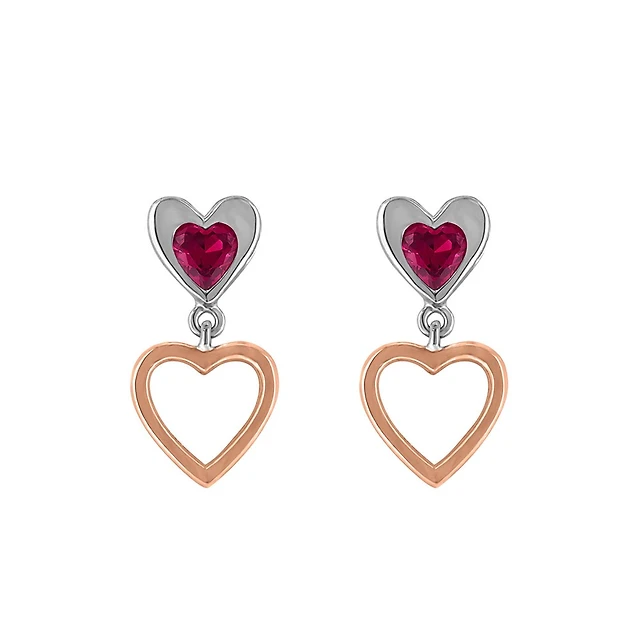 Heart Pendant with Created Ruby and Rose Tone in Sterling Silver