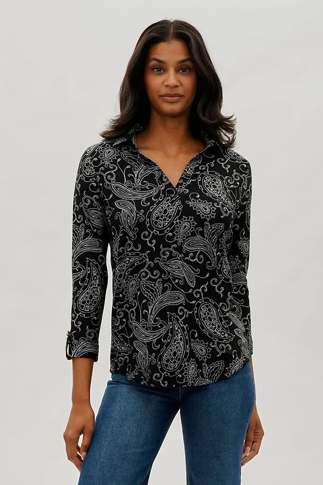 Beechers Brook Patterned Split Neck Blouse - Black