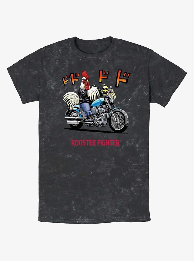 Rooster Fighter Rooster Motorcycle Mineral Wash T-Shirt