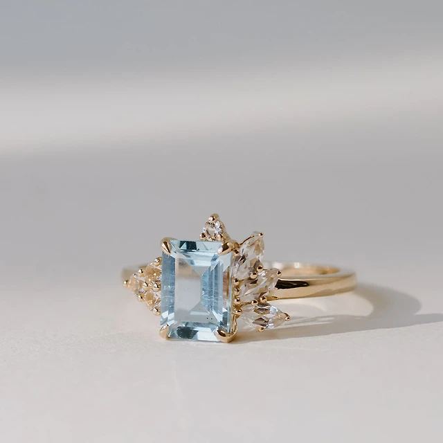Limor Mindful Jewellery Guidestones Elongated Hexagon Swiss Blue Topaz Sideways Solitaire Ring in 10K White Gold