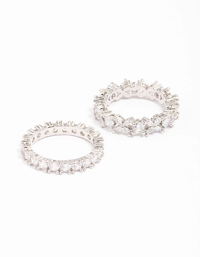 Silver Baguette Sapphire Diamante Ring Stack