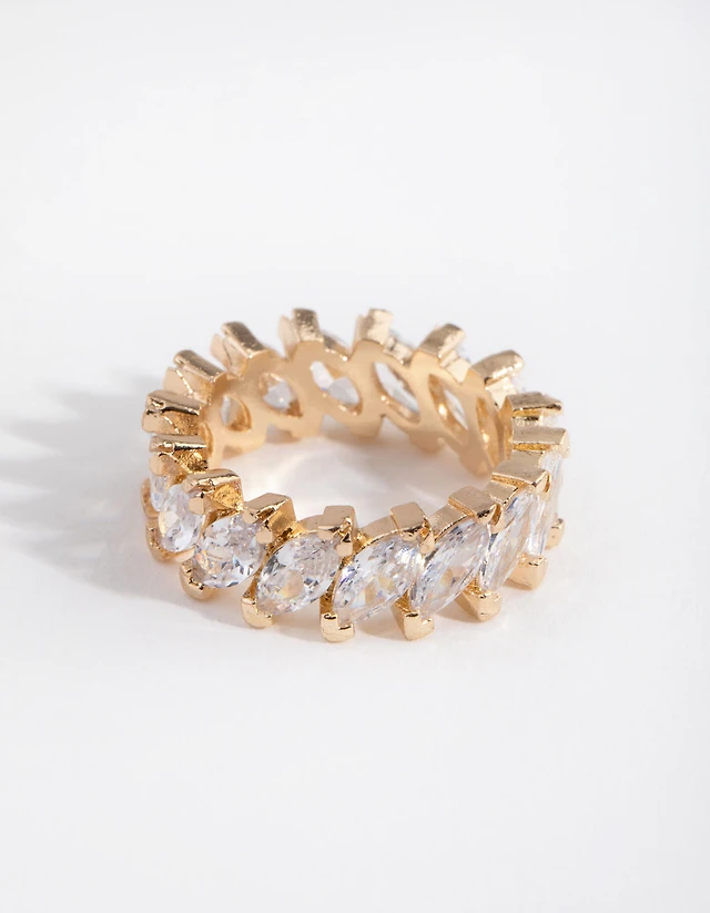 Gold Plated Cubic Zirconia Embellished Line Ring