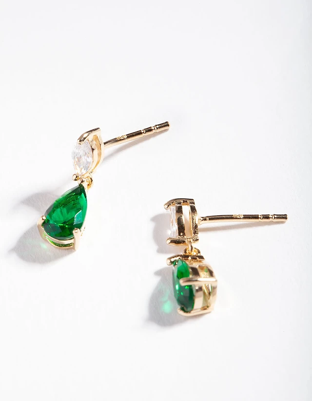 Gold Plated Cubic Zirconia Teardrop Hoop Earrings